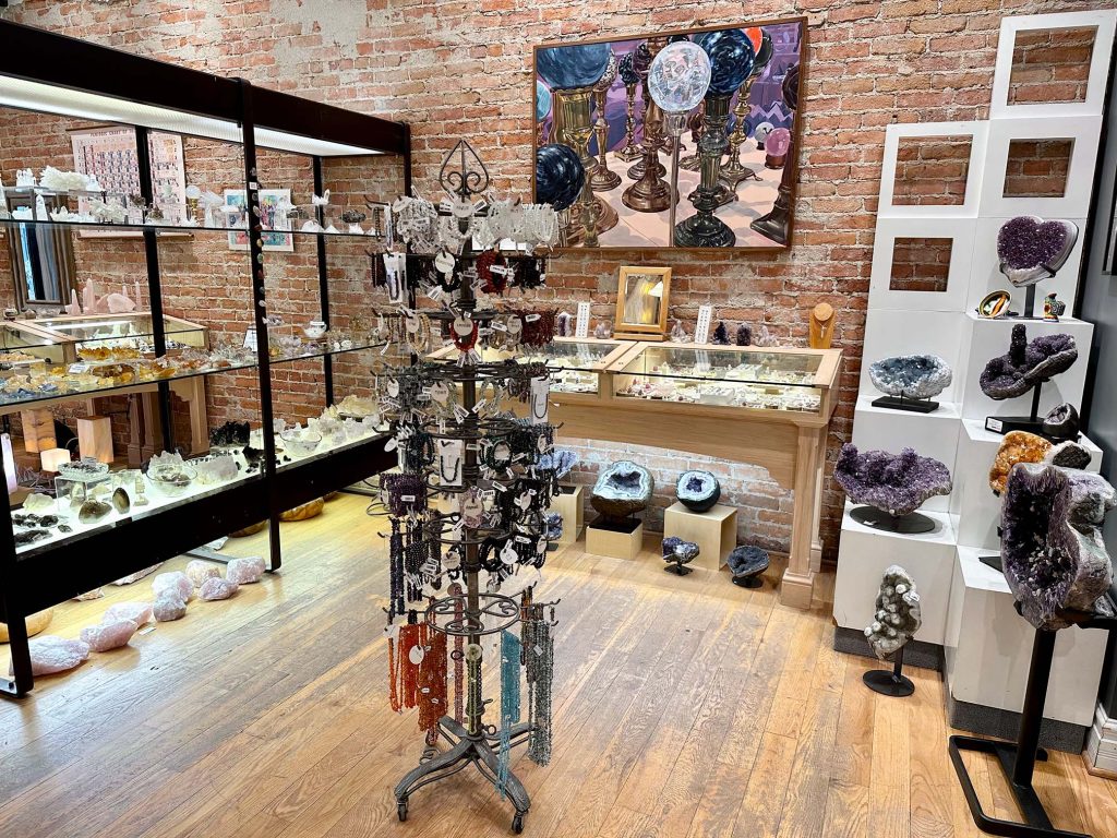 We stock a wide variety of rocks, minerals, fossils, and semi-precious gems from around the world. These pieces range in form: polished spheres, standing freeforms, hearts, palm stones, tumbled, points and obelisks, slices and slabs, sculptures, wall hangings, etc. And of course we have natural crystals, rough, and raw stones in a range of sizes. Pricing depends on weight, quality, and relative rarity of the stone. We have dozens of stone varieties under $10, as well as larger or more rare and expensive specimens.